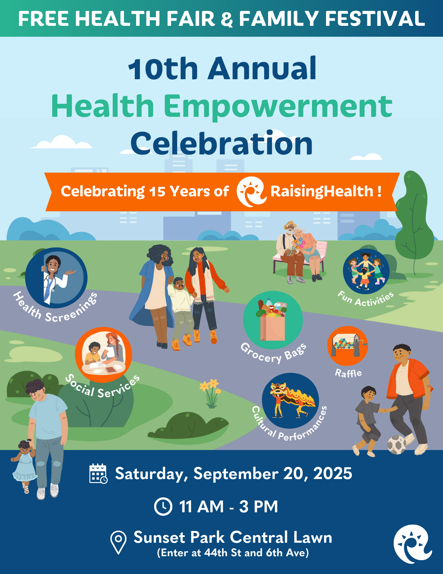 In just one month, we’ll be holding our 10th annual Health Empowerment Celebration! Our biggest event of the year, this family-friendly health fair and festival will feature health and social service resources from 50+ partners, health screenings, a food distribution, cultural performances, children’s activities, and a raffle, all for free! We can’t wait to see you on September 20th. See the flyer below for more details!