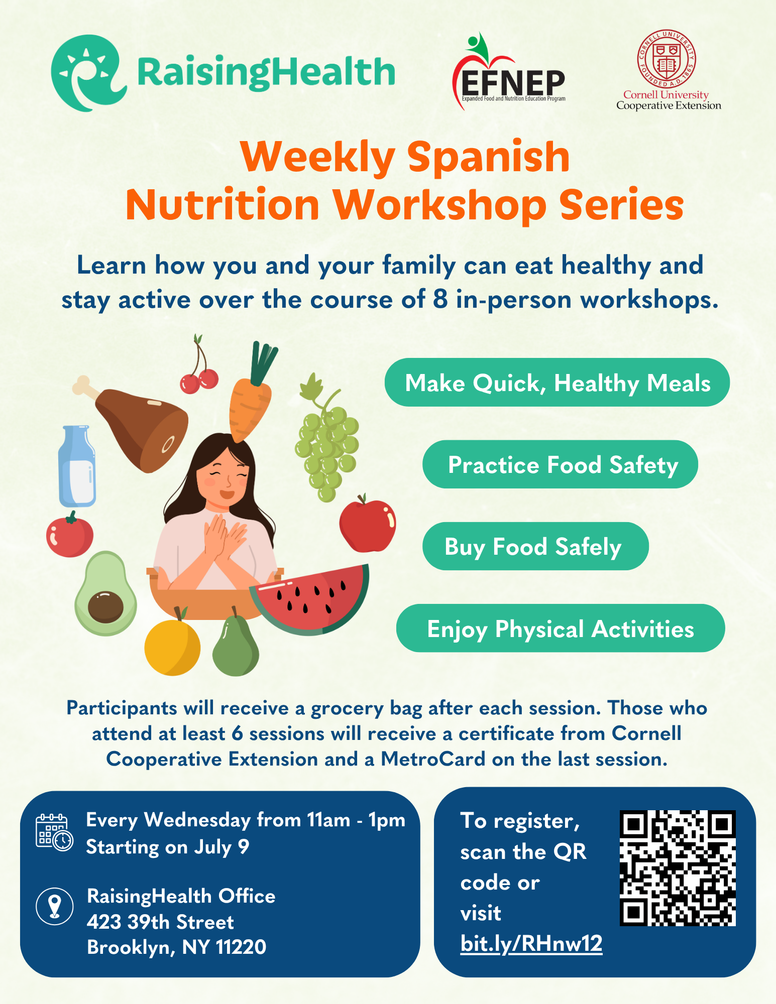 ¡Comience el año aprendiendo cómo comer saludablemente uniéndose a nuestra serie de talleres de nutrición de cinco semanas! Aprenda de nuestro equipo de Salud Comunitaria cómo preparar alimentos saludables que sepan deliciosos, cómo comer saludablemente con un presupuesto limitado y más. Los participantes que asistan a más de cuatro sesiones recibirán un certificado de finalización y una tarjeta metrocard gratuita. Las sesiones tienen lugar todos los martes a las 4:30 p. m. ¡Regístrate aquí!
